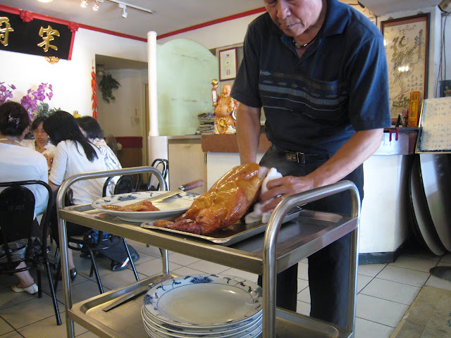 我們還沒點菜,就看到老闆在我們面前片鴨